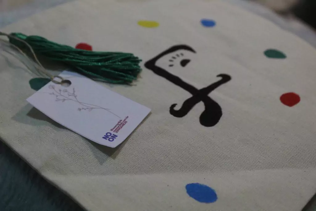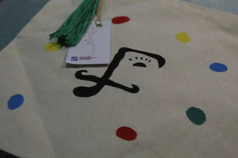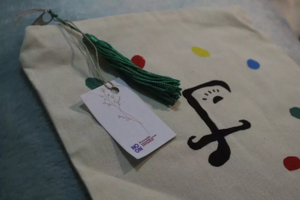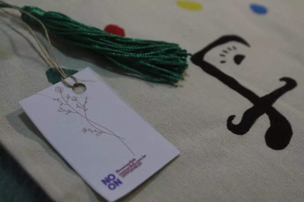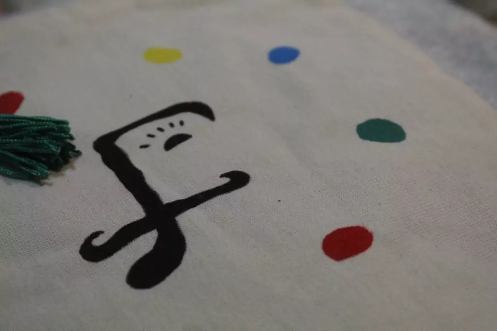 Necessaire m algodão cru, pintada a mão inspirada nas peças criadas por Tae como Vante. Tamanho 20x20 acompanha tassel verde.